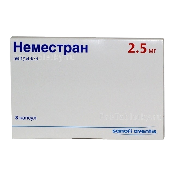 Если пропущен прием одной дозы, капсулу следует принять на следующий день, сохраняя в дальнейшем привычную недельную схему приема препарата. Если пропущены две и более дозы Неместрана, то лечение следует прекратить и возобновить на первый день следующего менструального цикла по обычной схеме.