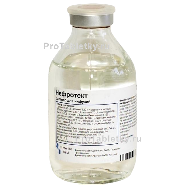 Нефротект можно применять до тех пор, пока пациенту требуется парентеральное питание или остается необходимость в восполнении потери аминокислот.