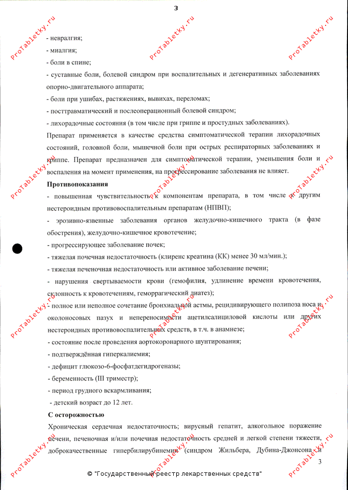 С осторожностью: хроническая сердечная недостаточность; вирусный гепатит, алкогольное поражение печени, печеночная и/или почечная недостаточность средней и легкой степени тяжести, доброкачественные гипербилирубинемии (синдром Жильбера, Дубина-Джонсона и Ротора), цирроз печени с портальной гипертензией, нефротический синдром; сахарный диабет, заболевания периферических артерий, язвенная болезнь желудка и двенадцатиперстной кишки (в анамнезе); гастрит, энтерит, колит; бронхиальная астма, бронхоспазм; пожилой возраст; беременность (I и II триместры - применение возможно только по назначению врача в тех случаях, когда потенциальная польза превышает возможный риск), период лактации (при необходимости применения препарата в период грудного вскармливания следует прекратить кормление грудью).