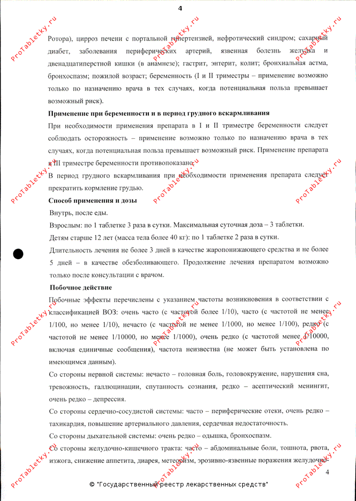 Длительность лечения не более 3 дней в качестве жаропонижающего средства и не более 5 дней - в качестве обезболивающего. Продолжение лечения препаратом возможно только после консультации с врачом.