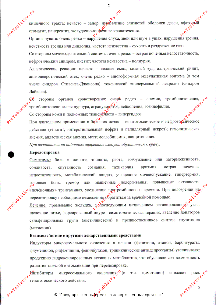 При длительном применении в больших дозах - гепатотоксическое и нефротоксическое (гепатит, интерстициальный нефрит и папиллярный некроз) действие; гемолитическая анемия, апластическая анемия, метгемоглобинемия, панцитопения.