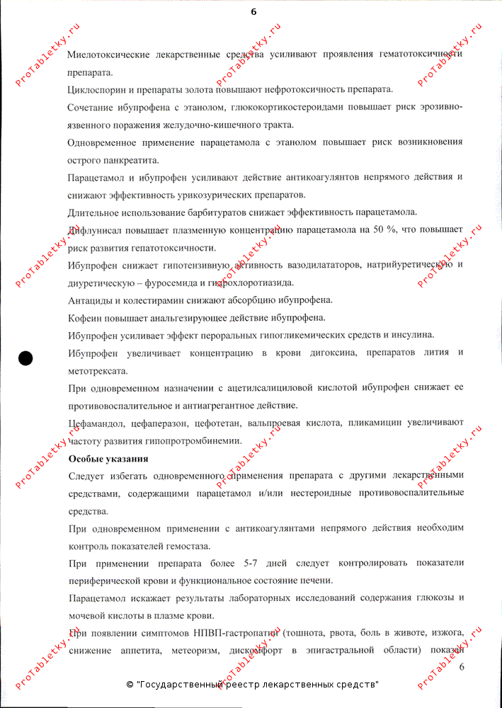 Парацетамол и ибупрофен усиливают действие антикоагулянтов непрямого действия и снижают эффективность урикозурических препаратов.