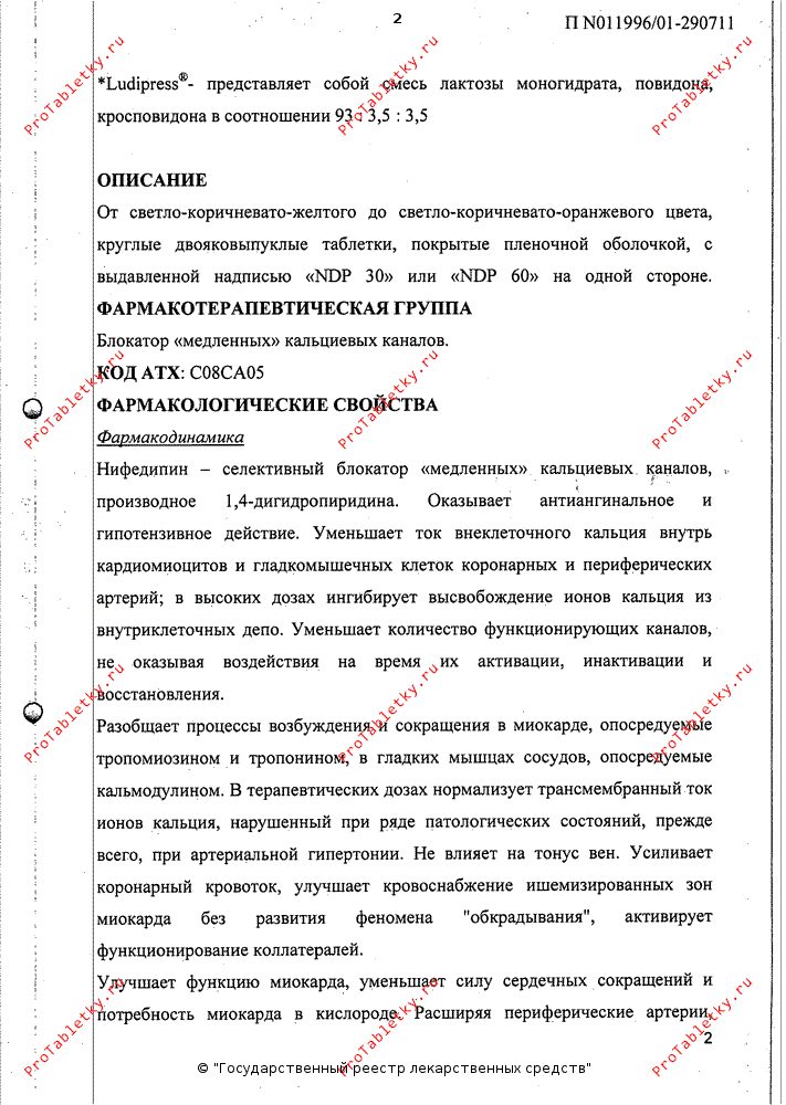 Таблетки с модифицированным высвобождением, покрытые пленочной оболочкой от светло-коричневато-желтого до светло-коричневато-оранжевого цвета, круглые, двояковыпуклые, с выдавленной надписью "NDP 30" на одной стороне.
