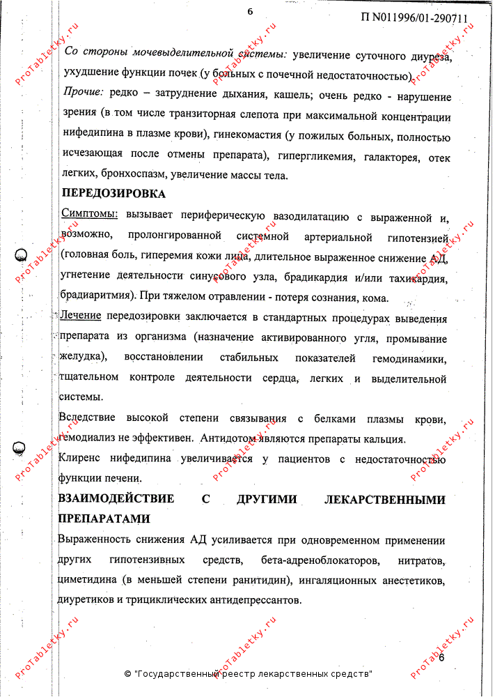 При одновременном применении с фенобарбиталом, фенитоином, карбамазепином уменьшается концентрация нифедипина в плазме крови.
