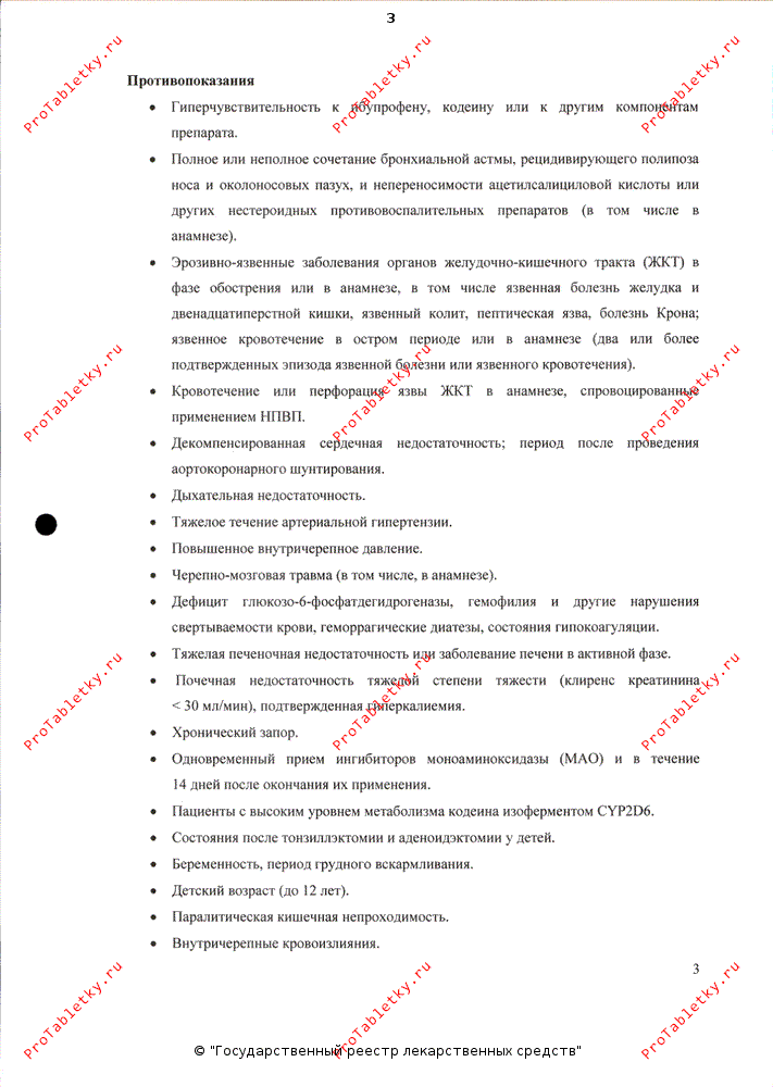 - повышенная чувствительность к ибупрофену, кодеину или к другим компонентам препарата.