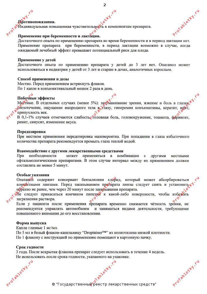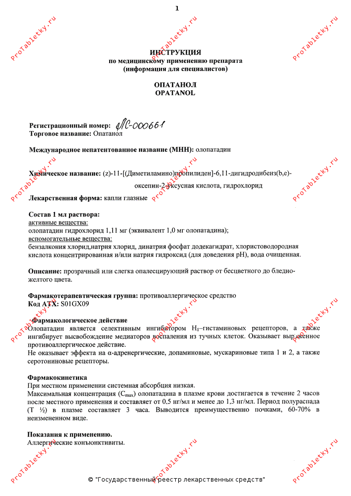Опатанол относится к противоаллергическим каплям для глаз и хорошо справляется с проявлениями аллергической реакции на слизистой оболочке глаз, устраняет чувство зуда, жжения, покраснения и дискомфорта в глазах. Хорошо борется с отеком. Нет такого Необходима консультация врача-офтальмолога для назначения данных глазных капель | |||||||||