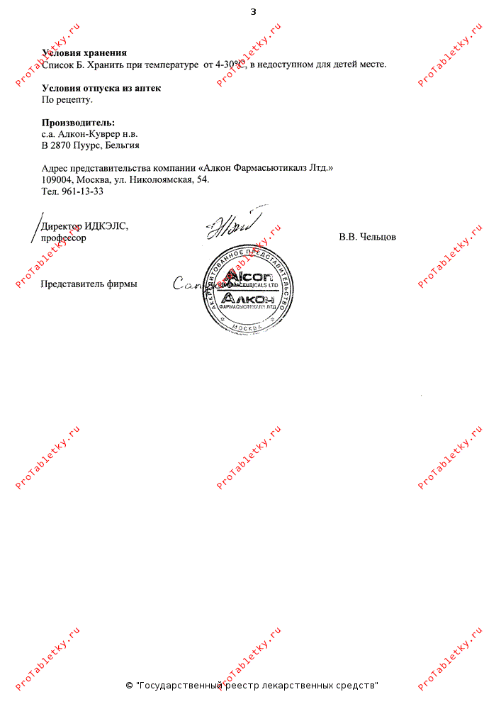 Препарат закапывают по 1 капле в конъюнктивальный мешок 2 раза/сут.