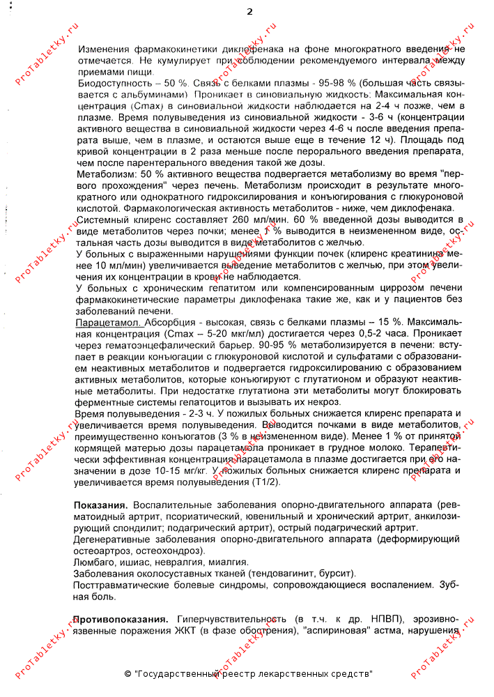 Недавно начал использовать в своей практике данный препарат. За счет комбинации в составе нестероидного противоспалительного компонента ("Диклофенак") и ненаркотического анальгетика ("Парацетамол") оказывает отличное комбинированное действие. Приемлемая цена. Пока не отметил. Нет необходимости назначать отдельно НПВС и "Парацетамол", что очень удобно. |