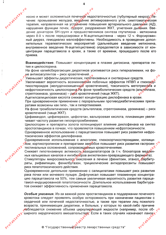 Парацетамол повышает риск развития нефротоксичных эффектов диклофенака.