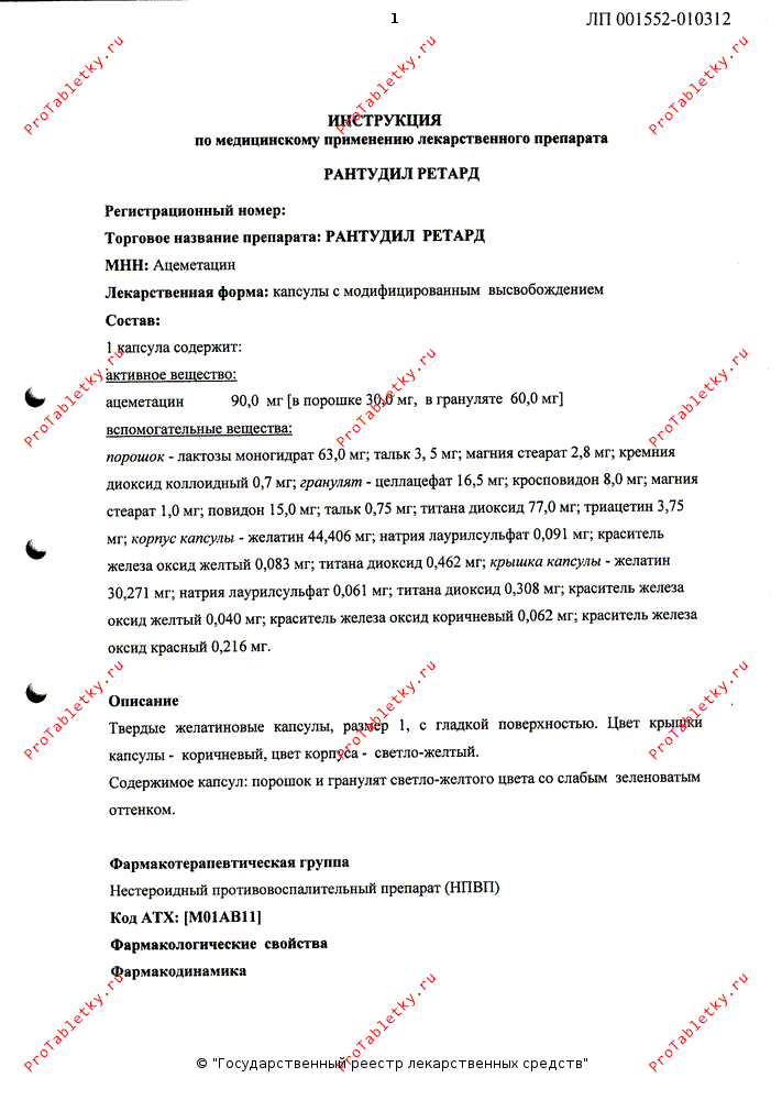 Рантудил Ретард (Rantudil retard): 1 отзыв врача, инструкция по применению, аналоги, инфографика, 1 форма выпуска.