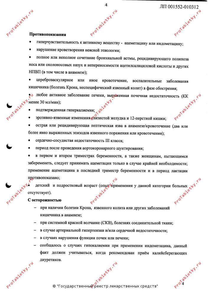 - гиперчувствительность к активному веществу - ацеметацину или индометацину;