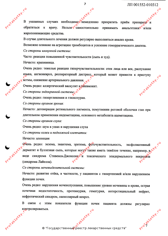 Со стороны мочевыделительной системы: нечасто - развитие отека, в частности, у пациентов с гипертензией и/или нарушением функции почек; очень редко - нарушения мочеиспускания, повышение уровня мочевины в крови, острая почечная недостаточность, протеинурия, гематурия, интерстициальный нефрит, нефротический синдром, папиллярный некроз. В связи с этим показатели функции почек пациента должны регулярно контролироваться.