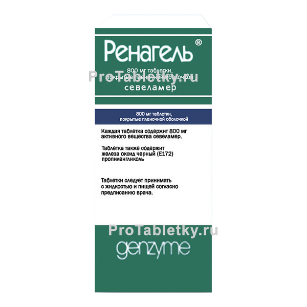 Препарат не повышает кальций в крови, что важно для людей с кальцификацией сосудов. Дороговизна, в отличие от препаратов другой фармакологической группы, регулирующие фосфорно-кальциевый обмен. Может вызывать запоры. Ренагель -это эффективный препарат для снижения уровня фосфора в крови у людей с хронической почечной недостаточностью и находящимся на программном гемодиализе. В аннотации к препарату есть рекомендации по дозировке, принимается во время еды. |