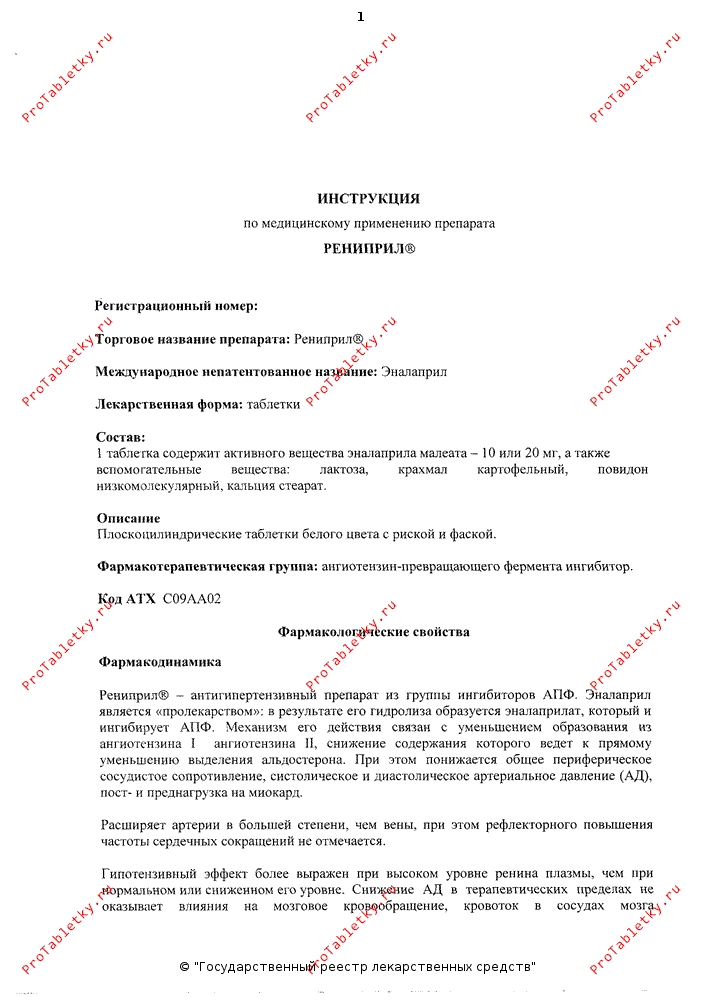 Рениприл (Renipril): 5 отзывов врачей, инструкция по применению, аналоги, инфографика, 1 форма выпуска.