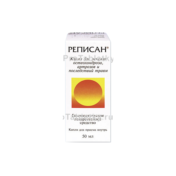 Действие препарата Реписан является результатом совокупного действия его компонентов, поэтому проведение кинетических наблюдений не представляется возможным; все вместе компоненты не могут быть прослежены с помощью маркеров или биоисследований. По этой же причине невозможно обнаружить и метаболиты препарата.Форма выпуска