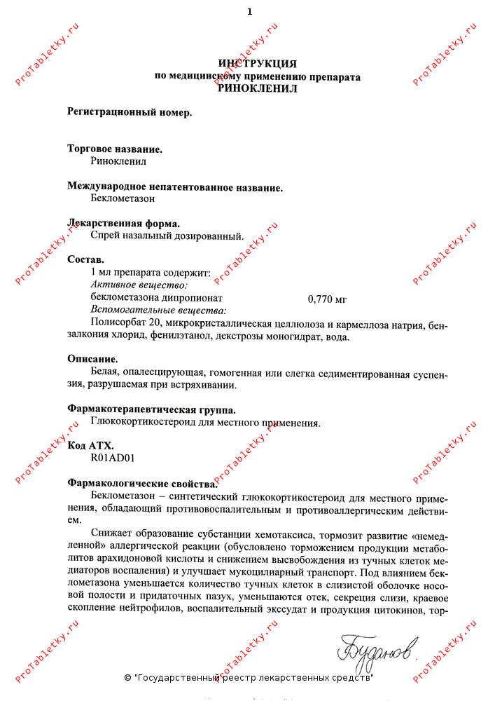 Препарат работает уже с первых минут применения, хорошо снимает отек, спазм, и благоприятно воздействует на проходимость дыхательных путей. Ринокленил - глюкокортикостероид, беклометазон дипропионат, назначаю в педиатрической практике, пациентам с сезонным аллергическим ринитом, круглогодичным, а так же при неэффективности других ЛС, так же поллиноз, в комплексной терапии с бронхиальной астмой. Препарат работает. |