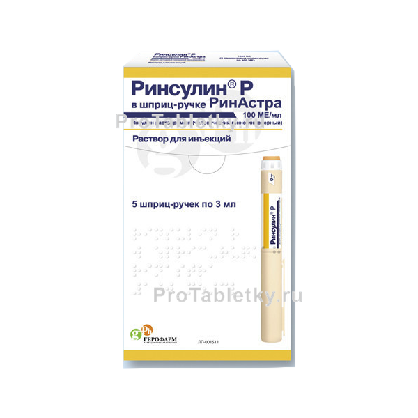Ринсулин® Р - инсулин короткого действия и обычно применяется в комбинации с инсулином средней продолжительности действия (Ринсулин® НПХ).