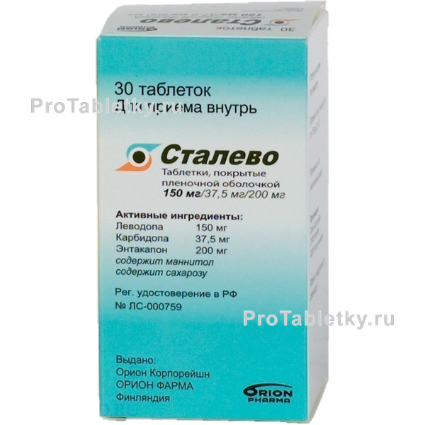 При замене Сталево на терапию леводопа + карбидопа (без энтакапона) потребуется увеличение дозы леводопы.