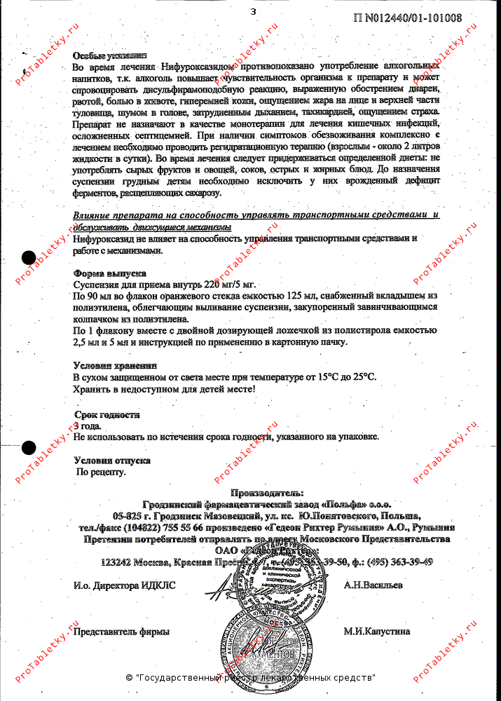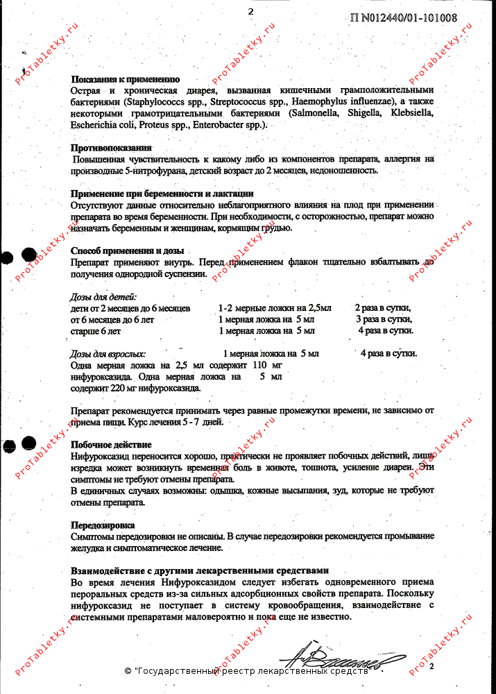 - повышенная чувствительность к нифуроксазиду, производным нитрофурана или любому вспомогательному веществу.