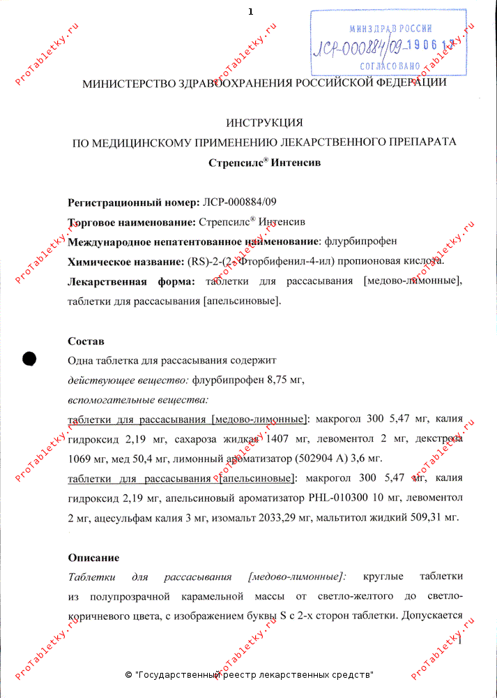 Действующим веществом препарата Стрепсилс интенсив является флурбипрофен – нестероидный противовоспалительный (НПВС ). Выпускается в форме таблеток для рассасывания. Обладает приятным вкусом. Широко используется в оториноларингологической и стоматологической практике. Обладает сильновыраженным обезболивающим, противовоспалительным и жаропонижающим эффект. Применение только с 12-летнего возраста. Взаимодействует со многими группами препаратов- следует применять с осторожностью и по рекомендации врача. | |||||||||