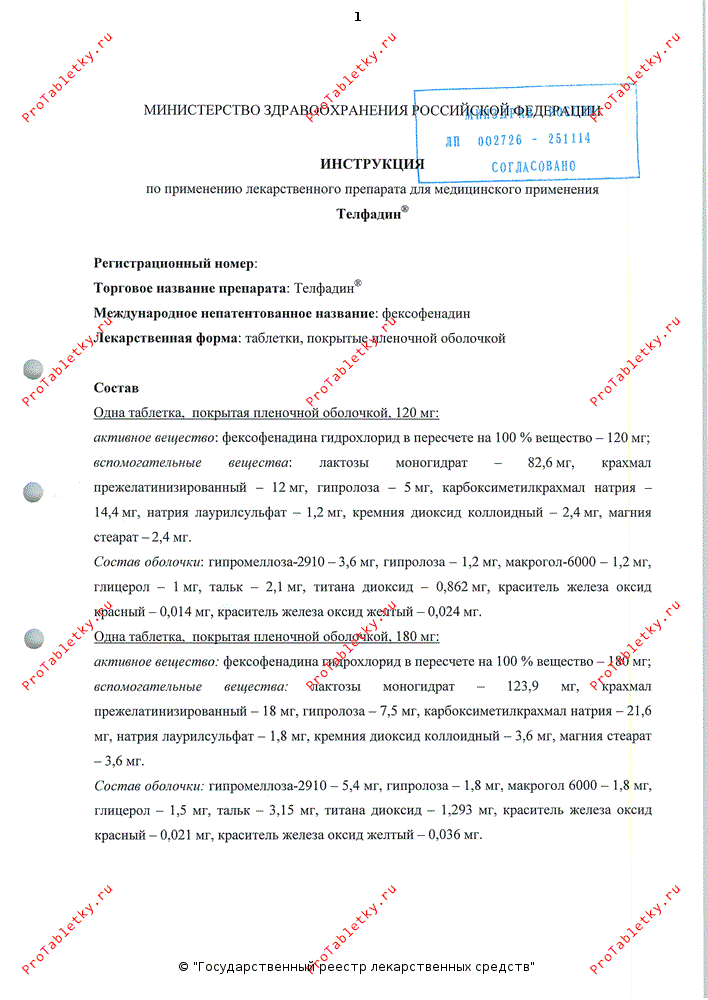 | фексофенадин (в форме гидрохлорида) | 120 мг |