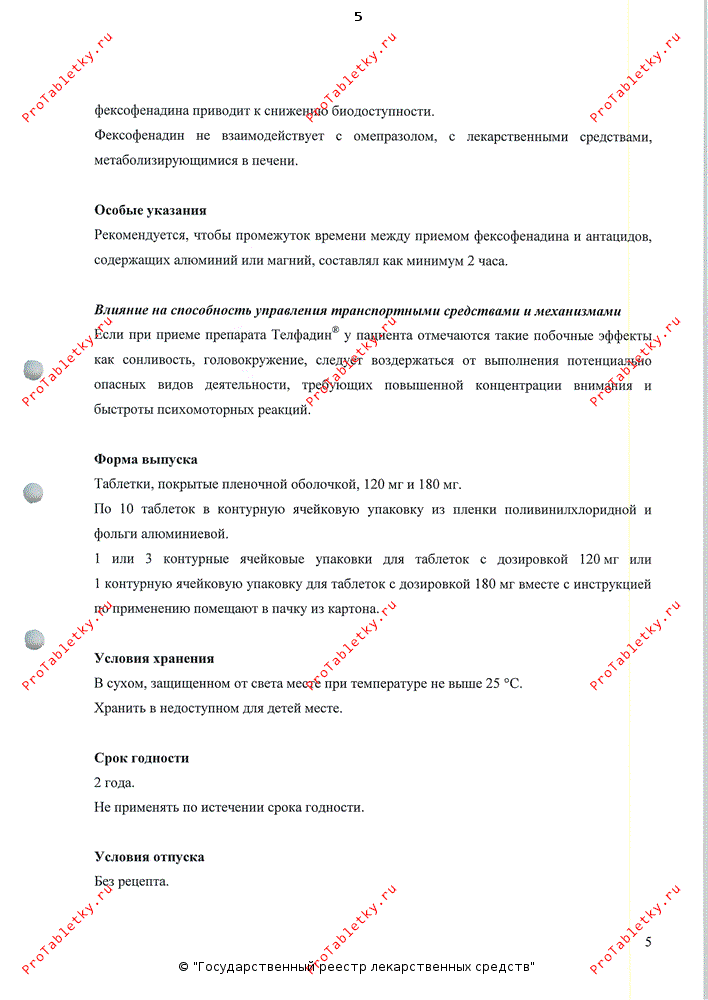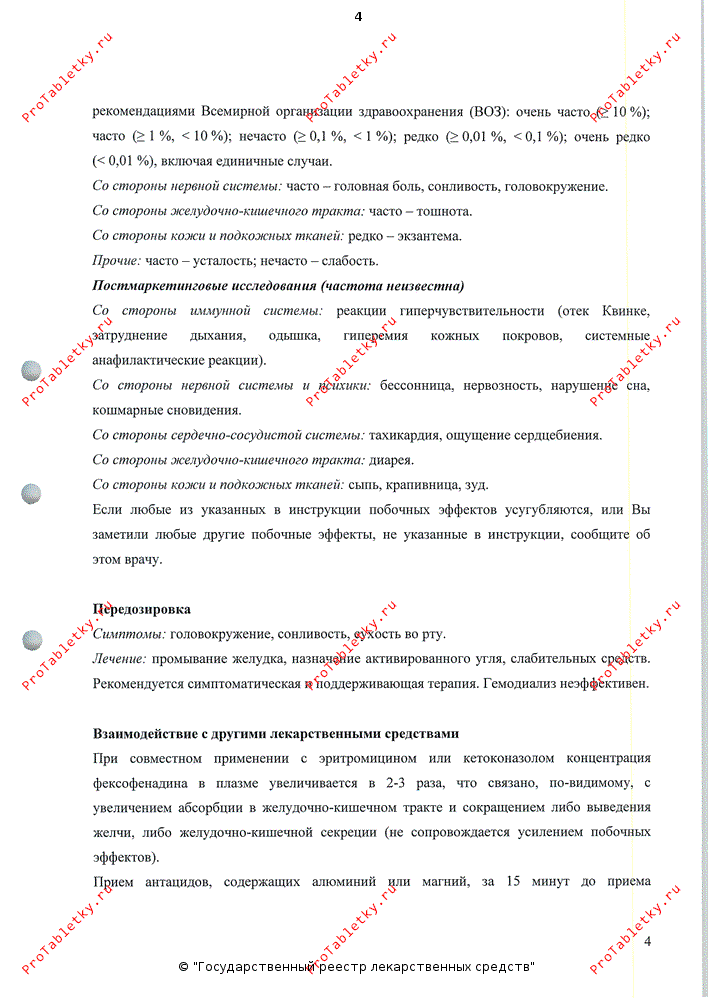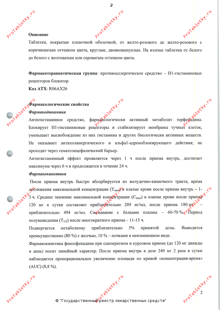 Эффективность и безопасность применения фексофенадина у детей младше 6 лет не изучались.