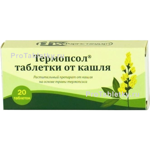 Отхаркивающее средство растительного происхождения. Термопсиса трава обладает отхаркивающим действием, оказывая умеренное раздражающее действие на рецепторы слизистой оболочки желудка, рефлекторно повышает секрецию бронхиальных желез. Содержащиеся в термопсисе алкалоиды (цитизин, метилцитизин, пахикарпин, анагирин, термопсин и термопсидин) оказывают возбуждающее действие на дыхательный и в высоких дозах рвотный центры.