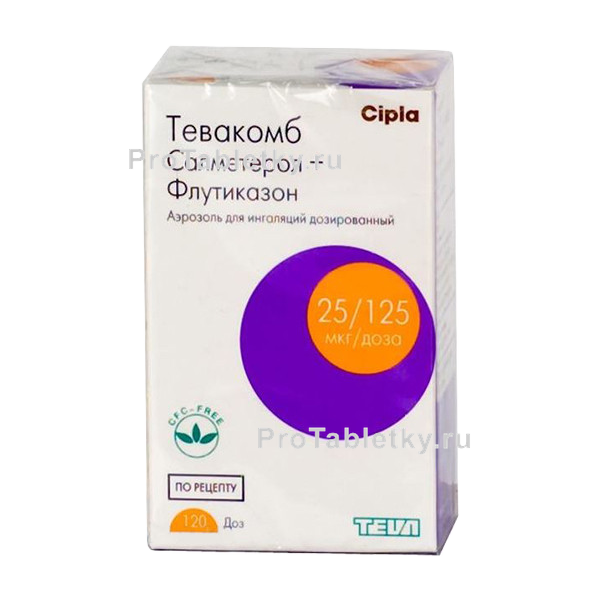 Поскольку препарат Тевакомб содержит салметерол и флутиказон, следует ожидать развития побочных реакций, характерных для каждого компонента в отдельности. Дополнительные побочные эффекты при одновременном применении двух компонентов препарата не отмечены.