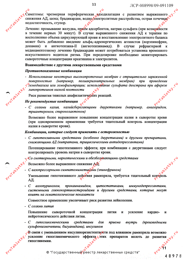 У пациентов с артериальной гипертензией рамиприл замедляет развитие и прогрессирование гипертрофии миокарда и сосудистой стенки.
