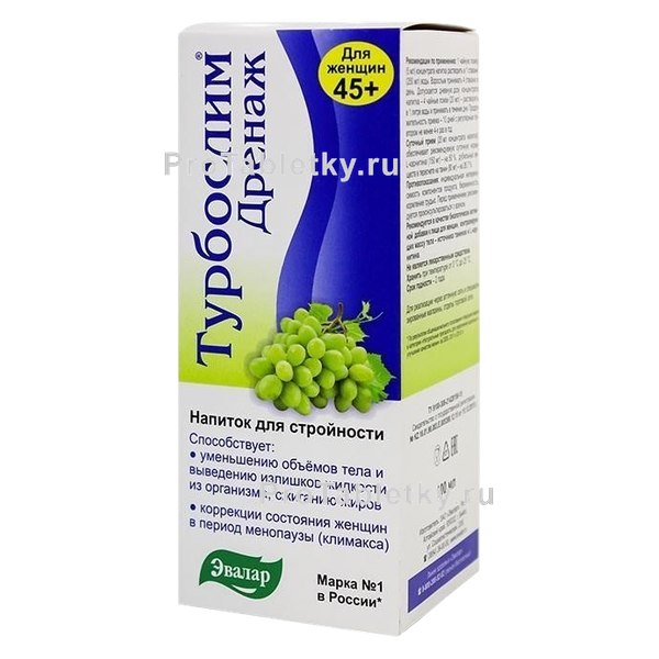 Турбослим дренаж для женщин 45+ концентрат напитка (Тurboslim drenazh dlya zhenshin 45+koncentrat napitka): 1 отзыв врача, инструкция по применению, аналоги, инфографика, 1 форма выпуска.