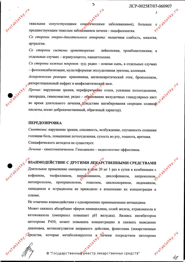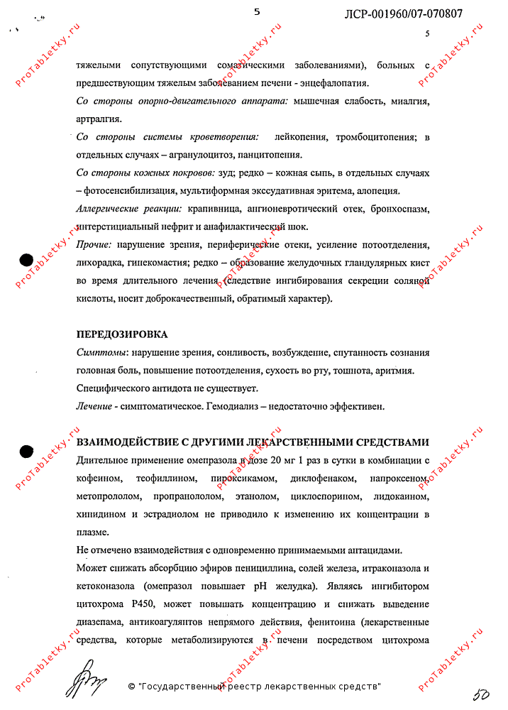 Прочие: нарушение зрения, периферические отеки, усиление потоотделения, лихорадка, гинекомастия; редко - образование желудочных гландулярных кист во время длительного лечения (следствие ингибирования секреции соляной кислоты, носит доброкачественный, обратимый характер).