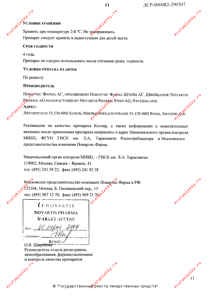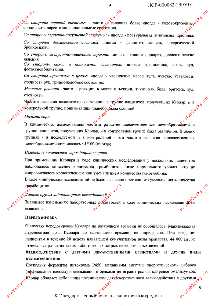 с таковой в общей популяции. Частота развития злокачественных новообразований в группе пациентов, получавших препарат Ксолар, и в контрольной группе оценивалась <1/100. В наблюдательном исследовании при сравнении пациентов, получавших лечение препаратом Ксолар, и пациентов, получавших иное лечение, продолжительностью до 5 лет, не было